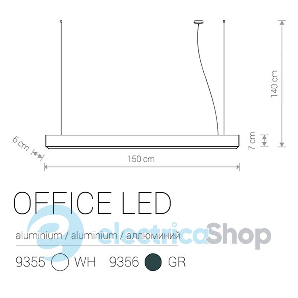 Підвісний світильник Nowodvorski 9356 OFFICE LED буде гарно виглядати в сучасних офісах. Виготовлений з алюмінію.