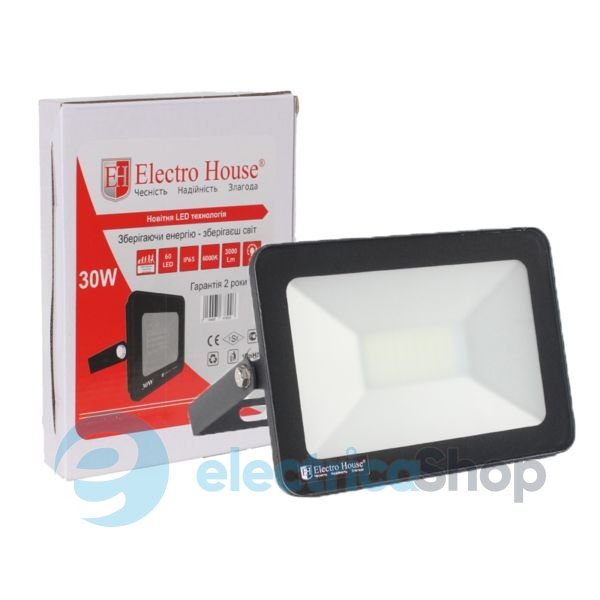 Світлодіодний прожектор Electro House EH-LP-207 з високим ступенем захисту від вологи і пилу призначений для освітлення вулиць і виробничих приміщень. Виготовлений з алюмінію та пластика.