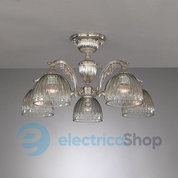 Люстра RECCAGNI ANGELO PL 9800/5 Nichel Vetro Fume буде гарно виглядати у вітальні, їдальні, спальні та інших класичних інтер'єрах. Виготовлена зі скла та металу.