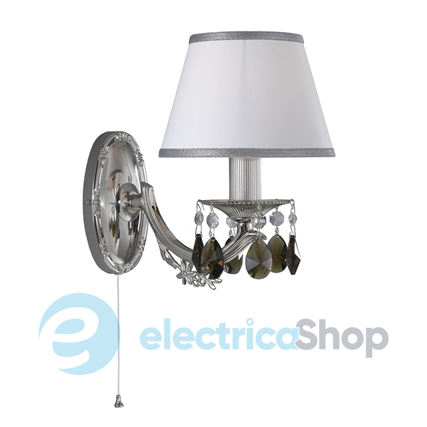 Бра RECCAGNI ANGELO A. 9831/1 Nichel Paralume bianco, cristalli fume буде гарно виглядати у вітальні, їдальні, спальні та інших класичних інтер'єрах. Основа виготовлена з металу (мельхіорове покриття), абажур текстильний (білий з мельхіоровим обрамленням), підвіски - з димчастого кришталю SCHOLER (Австрія).