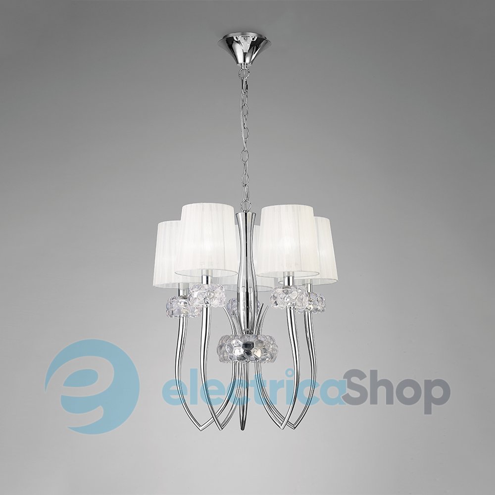 Люстра Mantra LOEWE 4632 матиме шикарний вигляд в класичних та сучасних Плафони виготовлені з органзи, декоративні елементи - зі скла, основа - з металу.