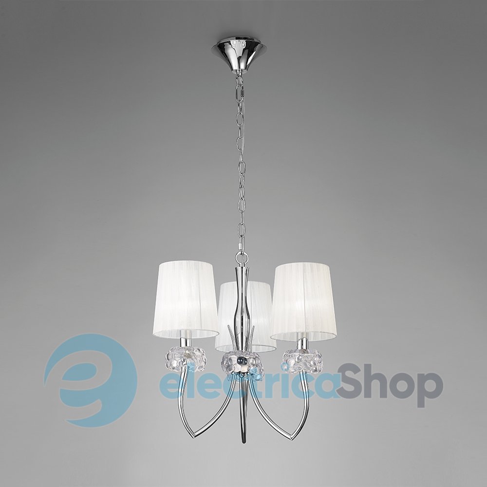 Люстра Mantra LOEWE 4633 матиме шикарний вигляд в класичних та сучасних Плафони виготовлені з органзи, декоративні елементи - зі скла, основа - з металу.