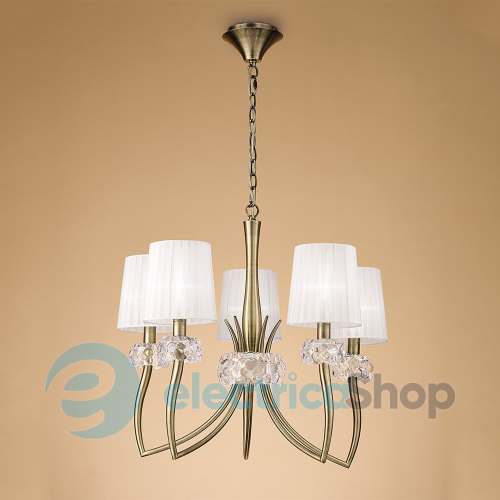 Люстра Mantra LOEWE 4731 матиме шикарний вигляд в класичних та сучасних Плафони виготовлені з органзи, декоративні елементи - зі скла, основа - з металу.