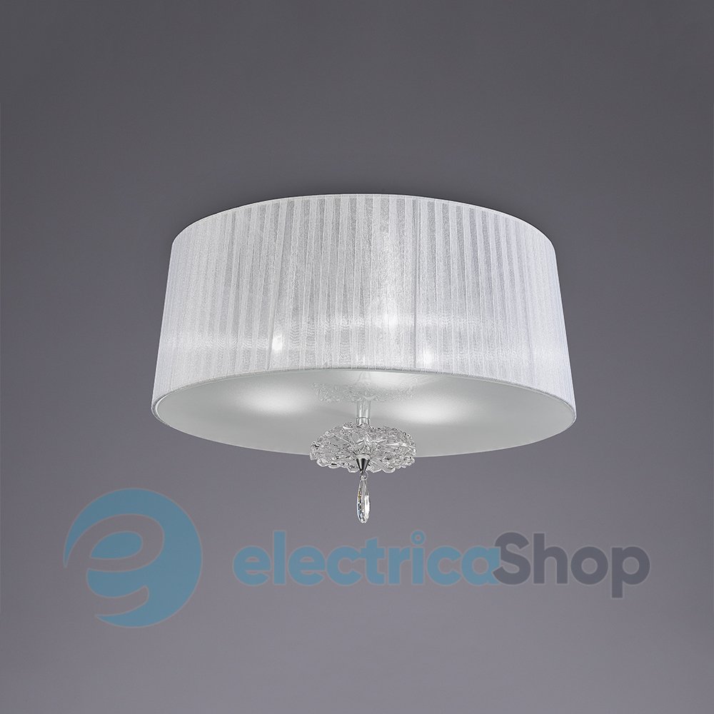 Стельовий світильник Mantra LOUISE 5275 матиме гарний вигляд в класичних та сучасних інтер'єрах. Основа виготовлена з хромованого металу, плафон - з тканини, а підвіски - зі скла.