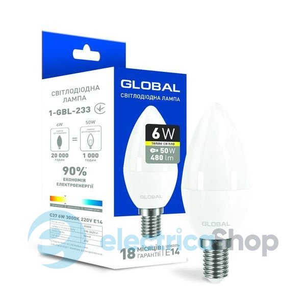 Опис led-лампи Global 1-GBL-233 C37 CL-F 6W 3000K