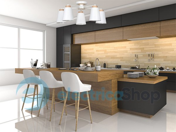 Люстра EMIBIG PERIOT 5 WHITE 477/5 матиме гарний вигляд у сучасних інтер'єрах, підкреслить індивідуальність вашої оселі. Виготовлена з металу з порошковим покриттям та дерев'яними елементами.