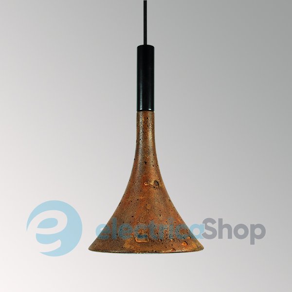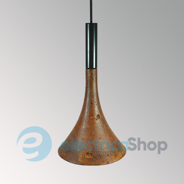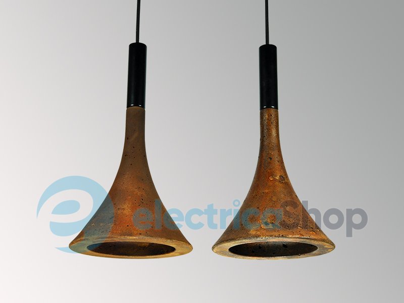 Оригінальний підвісний світильник 01101MET Agara Лійка матиме гарний вигляд в приміщеннях, оформлених в стилі "лофт" (наприклад, в магазині, кафе, барі або житловому приміщенні). Виготовлений на основі армованого бетону, має крупний, яскраво виражений рельєф, який ніколи не повторюється. Поверхня світильника оброблена фарбою, в якій міститься дрібний порошок сталі. Далі відбувається процес іржавіння і досягається природний колір іржі, який завжди різний. Догляд за світильником здійснюється сухим методом.