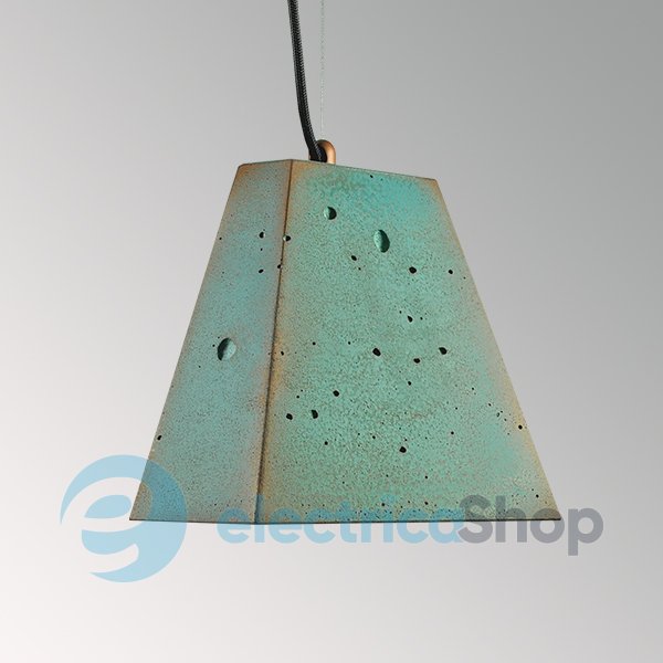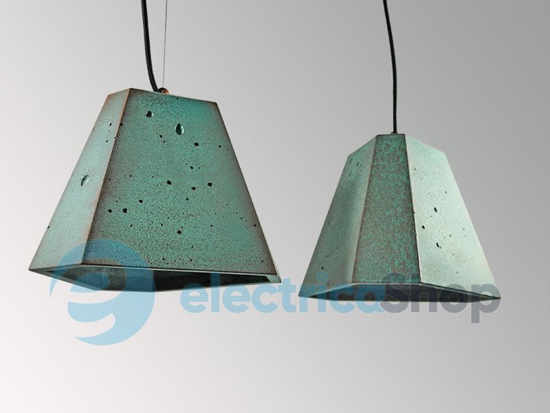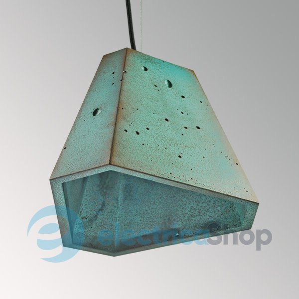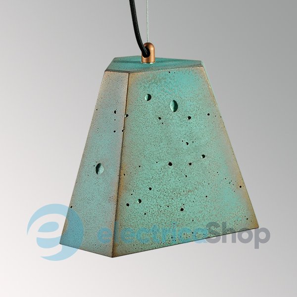Оригінальний підвісний світильник 01110COP.P Agara Трего матиме гарний вигляд в приміщеннях, оформлених в стилі "лофт" (наприклад, в магазині, кафе, барі або житловому приміщенні). Виготовлений на основі армованого бетону, має крупний, яскраво виражений рельєф, який ніколи не повторюється. Поверхня світильника оброблена фарбою, в якій міститься дрібний порошок міді. Далі відбувається процес окислення і досягається природний бірюзовий колір окису міді, який завжди різний. Догляд за світильником здійснюється сухим методом.
