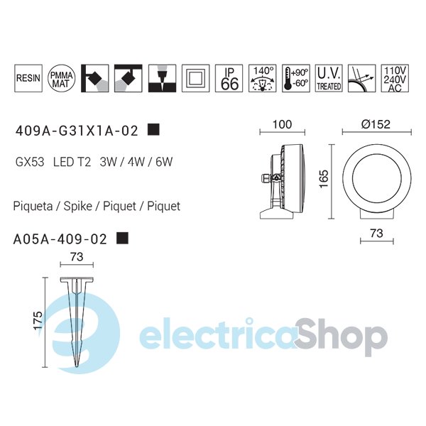 DOPO NAPOLES – універсальний світильник для вулиці, який може бути встановлений на грунт, на стіну або стелю, а також бути вкопаний в землю за допомогою штика, який купується окремо.
