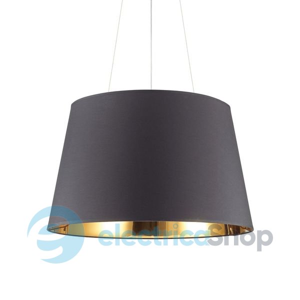 Люстра Ideal Lux 161662 Nordik підкреслить індивідуальність вашого будинку. Модний дизайн дає можливість використовувати світильник у сучасних інтер'єрах. Арматура з чорного металу з матовим відблиском. Абажур покритий чорною тканиною, всередині золотистий.