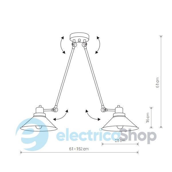 Має оригінальну конструкцію – положення плафонів можна змінювати, регулюючи висоту.