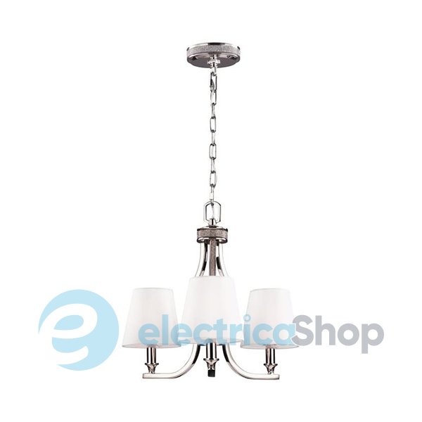 Стильна люстра Elstead Feiss FE/PAVE3 – це поєднання полірованого нікелю та тканини (білий шовковий шатунг). Такий освітлювальний прилад надасть яскравої елегантності дизайну будь-якої кімнати, не затьмарюючи інші красиві елементи декору.