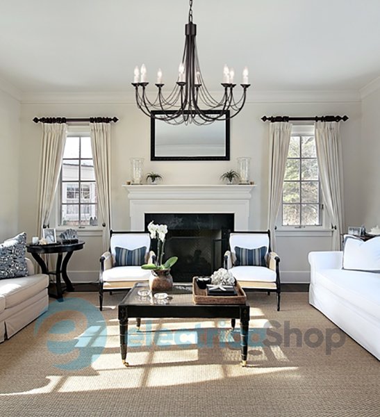 Стилізована під готику, прикрашена гарними «нитками» з металу. Арматура має матовий чорний фініш, який контрастує зі свічками кольору слонової кістки.