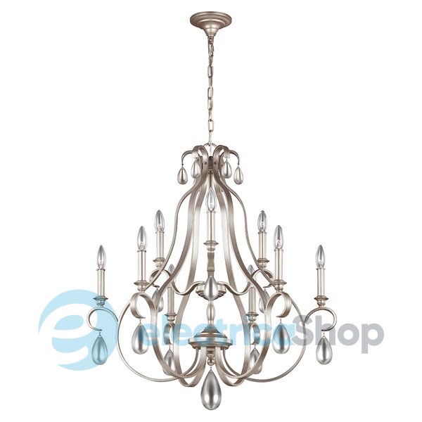 Люстра Elstead DeWitt (FE/DEWITT9) Feiss має елегантний та простий силует, оформлення створено під впливом стилю французької провінції. Всі деталі виготовлені з високоякісних матеріалів. Витончене кування підкреслюють свічки та підвіски-краплі, з одного боку пофарбовані в золотий, з іншого – в срібний колір, для досягнення цікавого світлового ефекту. Відтінок оздоблення – Sunrise Silver.