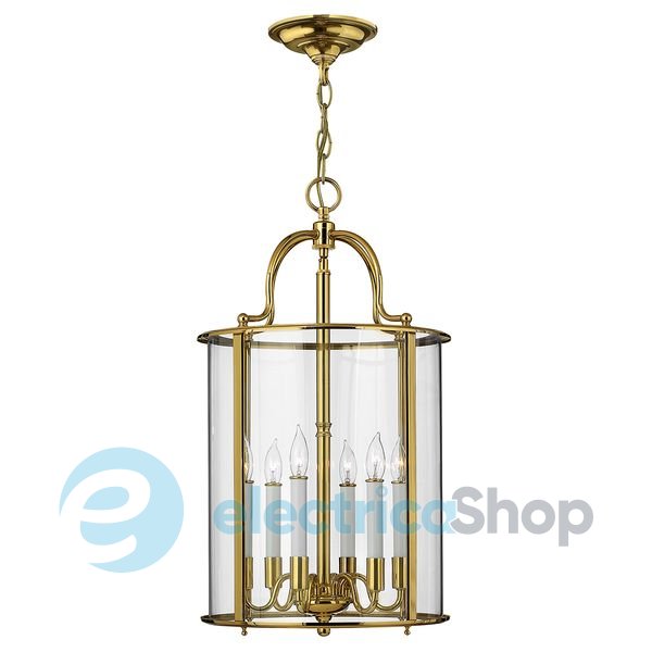 Підвісна люстра Elstead Gentry (HK/GENTRY/P/L PB) Hinkley чудово впишеться в будь-який інтер'єр, стане окрасою в класичному та сучасному дизайні. Всі деталі виготовлені з високоякісних матеріалів. Оздоблення під поліровану латунь (Polished Brass), плафон скляний. Доповнюють композицію білі свічки, які надають вишуканості та легкості.
