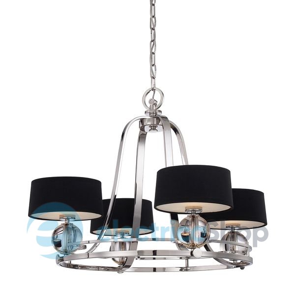 Люстра Elstead Uptown Gotham (QZ/GOTHAM4) Quoizel стане чудовим доповненням до сучасного інтер'єру. Її оформлення натхненне багатими та розкішними вогнями Манхеттена. Ексклюзивна серія була створена відомим дизайнером освітлення та меблів Серхіо Ороско (Sergio Orozco). Чорні абажури з тканини підкреслює металева основа з оздобленням під срібло (Imperial Silver). Розсіювач у нижній частині абажура зроблений з труєного скла.