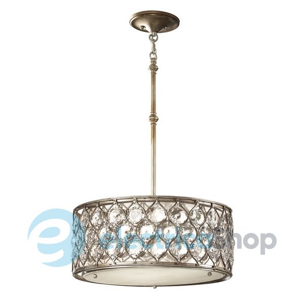 Підвісна люстра Elstead Lucia (FE/LUCIA/B) Feiss – це сучасний світильник із виразним дизайном. Абажур має ніжний білий відтінок, нижня частина зі скла кольору слонової кістки. Кришталеві краплини обрамлені в оправу з металу, покриття під поліроване срібло. Світло гарно розсіюється крізь абажур і створює відчуття затишку. Всі деталі виготовлені з високоякісних матеріалів.