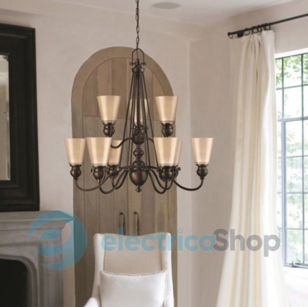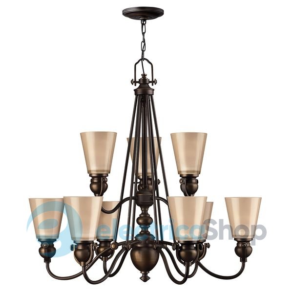 Люстра Elstead HK/MAYFLOWER9 Hinkley стане справжньою окрасою для класичного інтер'єру. Традиційний дизайн з блискучою обробкою Olde Bronze, плафони зі скла бурштинового кольору, унікальні тримачі для кріплення і декоративні литі елементи роблять колекцію Mayflower Elstead неповторною.
