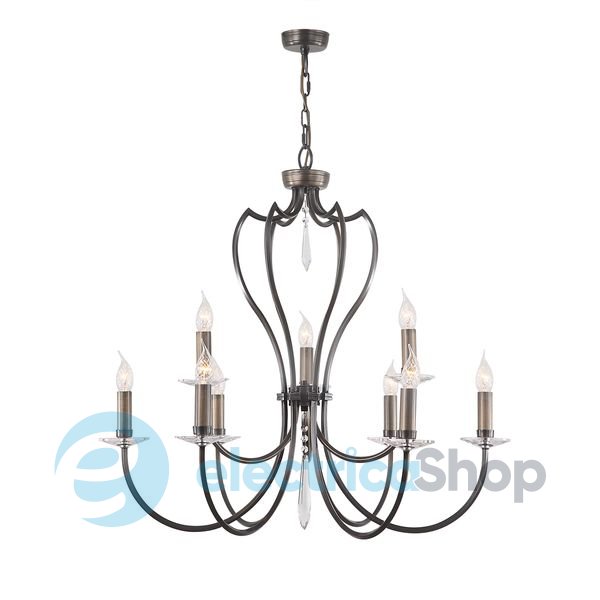 Люстра Elstead Pimlico (PM9 DB) – це ексклюзивний дизайн, класичний стиль і крафтове виробництво. Всі деталі виготовлені з високоякісних матеріалів. Витончене кування підкреслюють підвіски-краплі з кришталю. Свічки додають теплу нотку в композицію. Оздоблення під темну бронзу. Висоту підвісу можна регулювати – min 960 - max 2820 мм.