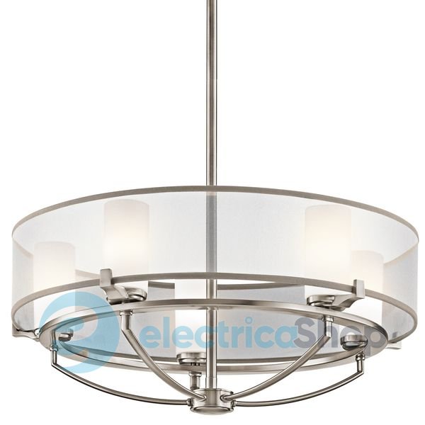 Люстра Elstead Saldana (KL/SALDANA5) Kichler стане чудовим доповненням до сучасного інтер'єру. Металева основа з покриттям під олово (Classic Pewter) контрастує з легким абажуром з органзи, який гарно розсіює світло. Плафони зроблені з труєного опалового скла. Всі деталі виготовлені з високоякісних матеріалів. Висоту можна регулювати – min 410 - max 1073 мм.