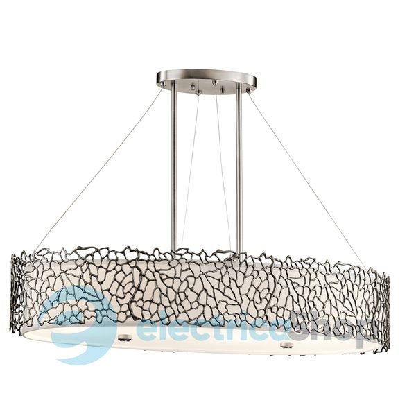 Люстра Elstead Silver Coral (KL/SILCORAL/ISLE) Kichler повторює в оформленні природні лінії коралів, підкреслить будь-який інтер'єр і створить затишну атмосферу. Оздоблення арматури під олово, абажур лляний зі вставкою з труєного скла внизу. Всі деталі виготовлені з високоякісних матеріалів. Висоту підвісу можна регулювати – min 350 - max 1194 мм.