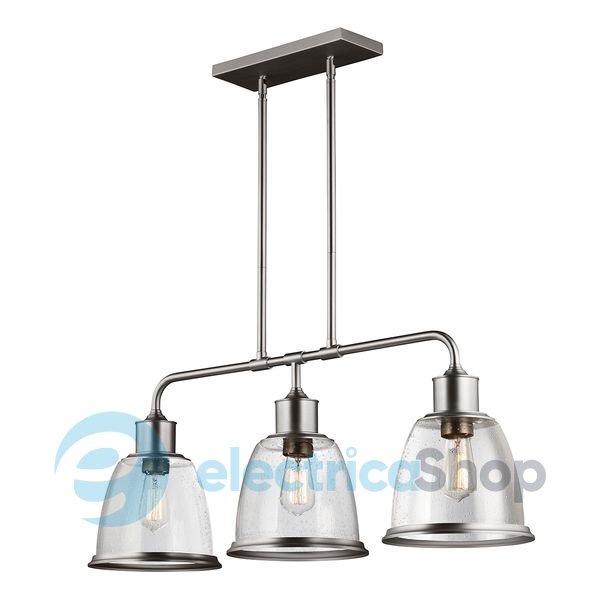 Люстра Elstead FE/HOBSON/3P SN Feiss в індустріальному стилі матиме чудовий вигляд в їдальні, на кухні, в кафе або ресторані. Виготовлена з металу кольору сатиновий нікель (Satin Nickel) та прозорого скла.