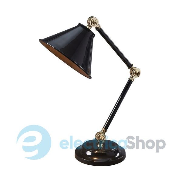 Настільна лампа Elstead Provence PV ELEMENT BPB матиме чудовий вигляд у приміщеннях, оформлених в стилі прованс, вінтаж. Виготовлена з металу. Колір – Black/Polished Brass (чорний-полірована латунь). Освітлювальний прилад оснащений спеціальними шарнірами, що дозволяє регулювати його положення.